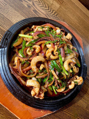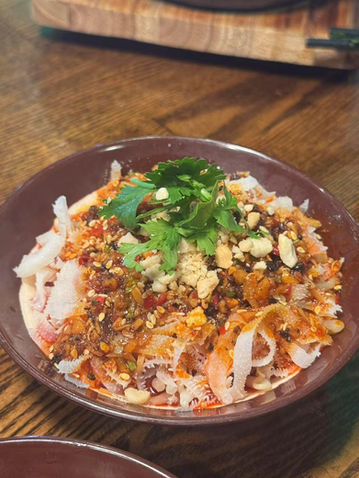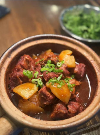 北方菜的锅包肉教科书级黄金脆壳里爆出老式酸甜汁,东北酸菜粉炒肉丝的镬气直冲天灵盖——南北风味在此交响。